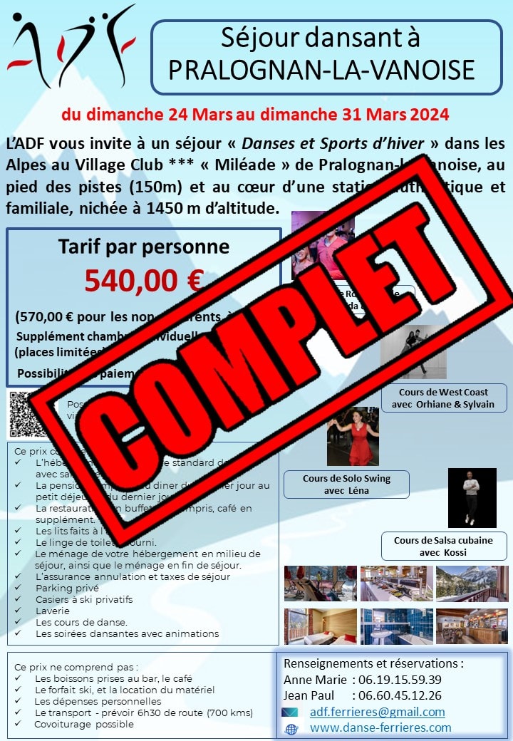 ....L'ADF vous invite à un séjour "Danses et sports d'hiver" dans les alpes au village club Miléade des 7 Laux dans le massif de belledonne