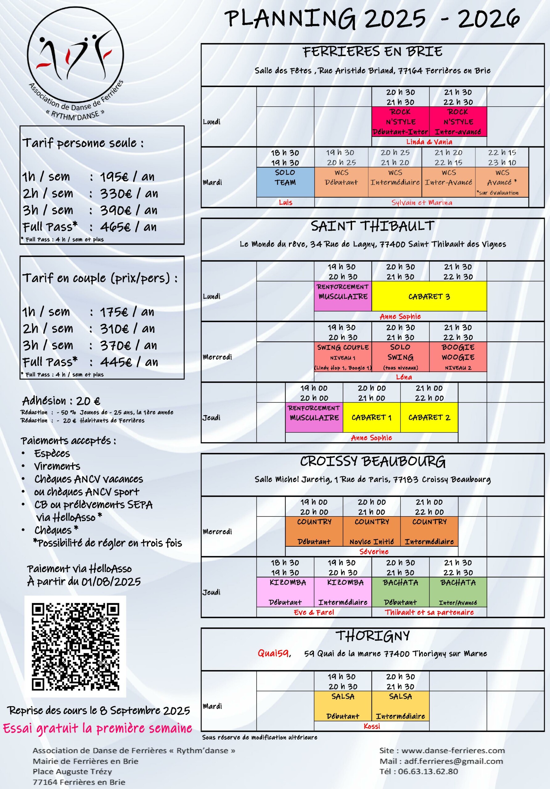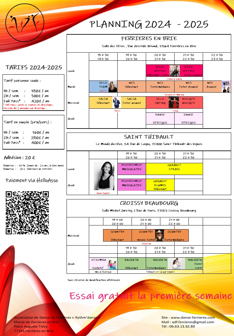 L’association vous propose son planning pour une nouvelle année de plaisir…